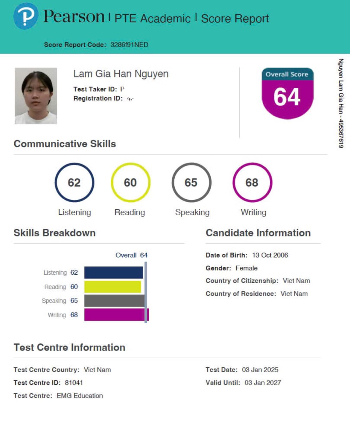 Em xin được chia sẻ chút niềm vui: em đã vượt qua mức điểm overall 36. Thầy Nghĩa đã hướng dẫn em luyện phát âm rất kỹ, kèm theo nhiều mẹo Read Aloud cực kỳ hữu ích. Em thật sự cảm ơn thầy và cả bạn Minh Thu cùng phòng đào tạo PTE Life đã kịp thời hỗ trợ em cập nhật hồ sơ còn thiếu. Chân thành biết ơn mọi người